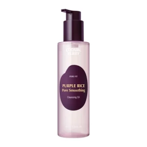 EQQUALBERRY Purple Rice Pore Smoothing Cleansing Oil este un ulei demachiant delicat care dizolvă machiajul și impuritățile fără a încărca tenul. Formula pe bază de orez violet contribuie la reducerea aspectului porilor și menține hidratarea pielii.